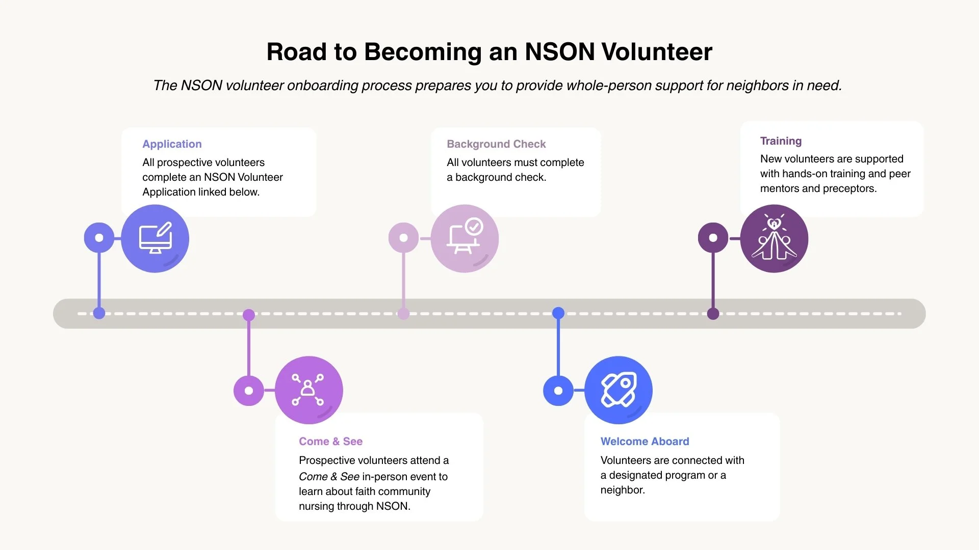 Fill out a volunteer application today to take the first step in ensuring “no one journeys alone” or to explore how you can get involved, please contact NSON at programcoordinator@nsoncharlotte.org or 980-292-0915.